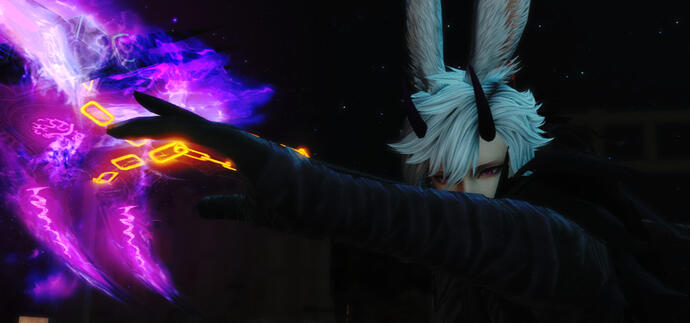 The garleans posed a threat as they had to share already limited resources for survival. The viera found themselves weaker and weaker, killed and starved thanks to their new neighbor. They sought solace in religion, believing the world revolved in cycles, and a new one was to begin after so much pain.Ultimately, they couldn't wait much longer. The Leader crafted a plan, aided by whispers from the shadows, to summon their God Jormungandr to deliver them from their torture. With aether crystals and a fitting vessel, they could finally be free.Once they gave birth to a well suited baby, he was to be raised with all luxuries affordable to strenghten the vessel for their God. And so, a white-haired viera baby was chosen, only known for his white (Weiss) hair since vessels require no names or identities of their own.He studied religion, trained the sword, and soon became an idol of hope for all within the tribe. Twenty-one years later, the tribe leader perfomed the summoning.Though succesful, it seems Weiss body wasn't strong enough to house the World Serpent. Seconds after the summoning, his vision grew red and he died on the spot. What happened to the tribe afterwards was lost to history, but this much is certain: they vanished from Ilsabard, just like Weiss.But with his soul tainted with the presence of a Primal, he wasn't able to move on or reincarnate. For six hundred years he (and Jormundangr) drifted through the aetherical sea, until a certain voidsent found them. Known as The Necromancer, a powerful voidsent who enjoys playing with the boundaries of life and death, and decided to ressurect Weiss into a proper body that could fit the Primal energy within.Through bringing Weiss back to life, it formed a contract with him. He is free to roam and do as he pleases in Hydaelyn, as long as he brings souls often for The Necromancer, specially souls tainted with darkness.By stroke of fate, the newly ressurected Weiss stepped in Eorzea right as Bahamut descended into the land, triggering strange memories and a calling voice beyond his understanding.By coincidence or fate once more, he met the Warrior of Light in the Mare Lamentorum after being sent there by The Necromancer, who did not wish for Zodiark to come back. He joined the fight against Zodiark and thus became an ally to the Warrior of Light.